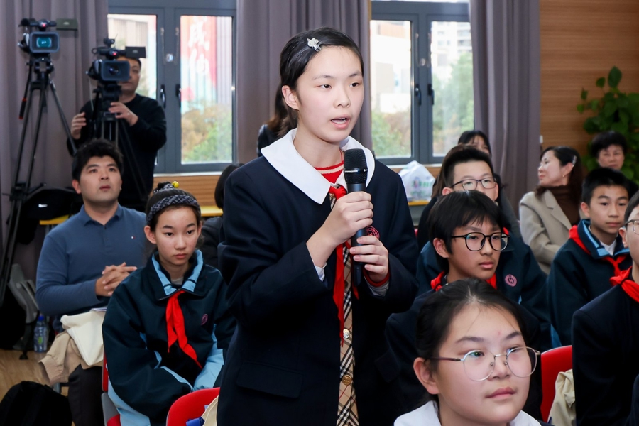 交流互动环节,多位法学专家与现场学生、家长和教师代表深入交流。同学们围绕网络安全、法律思维培养踊跃提问,嘉宾们从法律适用和实务操作角度一一回应;家长代表关注教育惩戒边界与法律职业发展,现场专家结合政策与案例进行了清晰解读;教师代表就学生潜质识别与高校招生政策进行提问,高校学者从育人理念和录取机制层面给出专业建议。