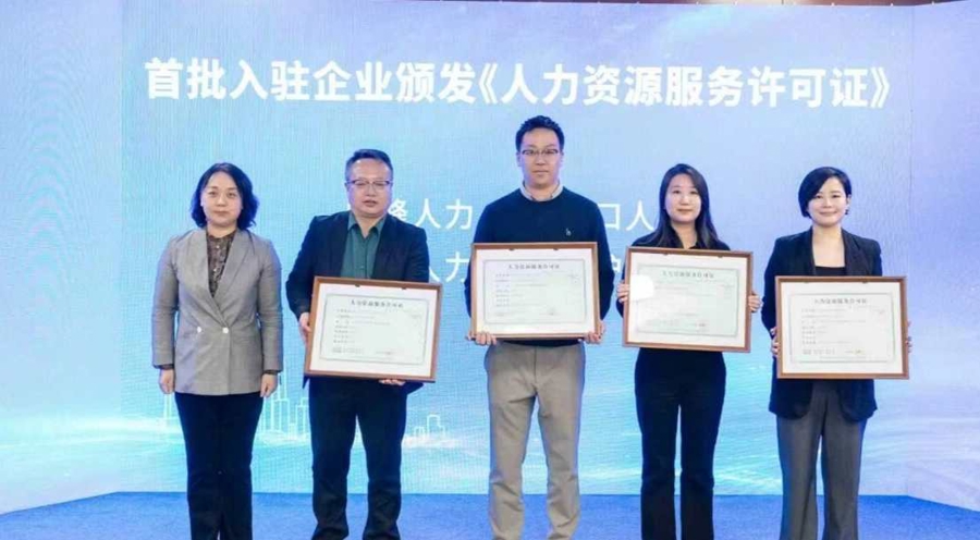 现场,北科创与北外滩示范点揭牌,并正式公布“人力资源服务券”专项政策。上海外服云信息技术有限公司等6家首批人力资源合作机构获授“人力资源服务券”。服务券是产业政策体系的重要延伸,通过鼓励企业向人力资源机构购买专业服务,以“真金白银”助力企业引才育才。